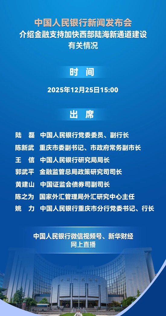 天龙配资 中国人民银行将举行新闻发布会 介绍金融支持加快西部陆海新通道建设有关情况